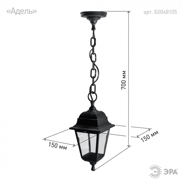 Б0048105 Светильник садово-парковый ЭРА НСУ 04-60-001 Адель подвесной четырехгранный черный Е27