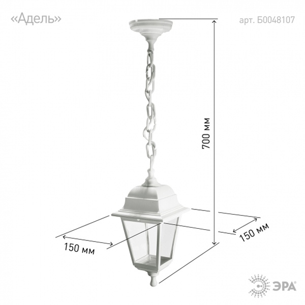 Светильник садово-парковый Адель E27 подвесной четырехгранный бел. НСУ 04-60-001 бел. ЭРА Б0048107
