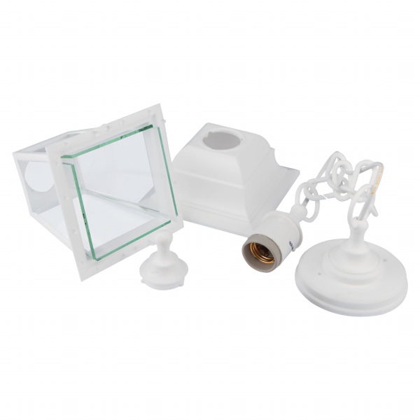 Осветительный, фасадный, четырехгранный прибор подвесного монтажа под лампу с цоколем E27 максимальной мощностью 60 Ватт, высота с подвесом 700 мм, прозрачный рассеиватель, белого цвета Б0048107