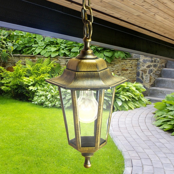 Б0048109 Светильник садово-парковый ЭРА НСУ 06-60-001 Адель1 подвесной шестигранный под бронзу Е27 фото 1