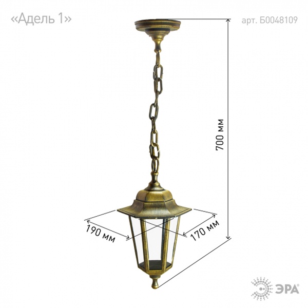 Светильник садово-парковый ЭРА НСУ 06-60-001 Адель1 подвесной шестигранный под бронзу Е27 Б0048109