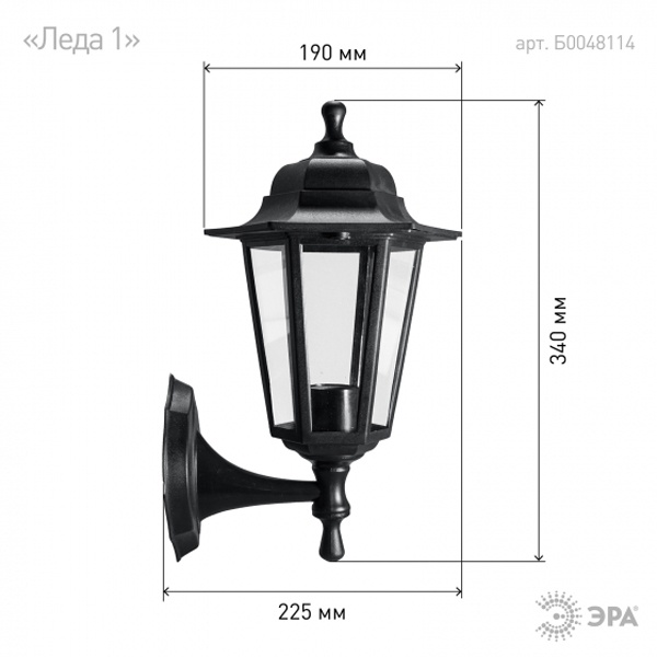 • Светильник садово-парковый ЭРА НБУ 06-60-001 Леда1 настенный шестигранный черный Е27