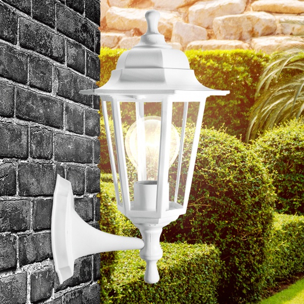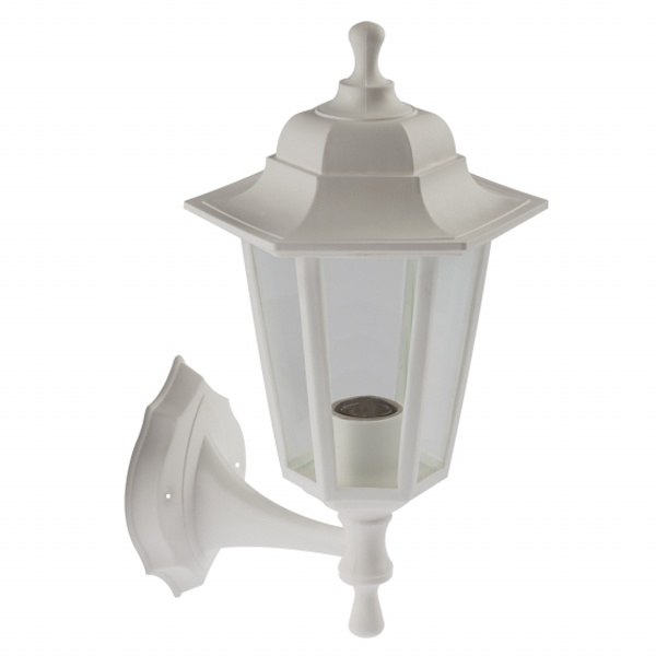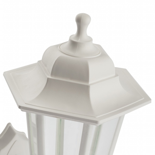 Осветительный, фасадный, шестигранный прибор настенного монтажа под лампу с цоколем E27 максимальной мощностью 60 Ватт, высота 340 мм, прозрачный рассеиватель, белого цвета Б0048116