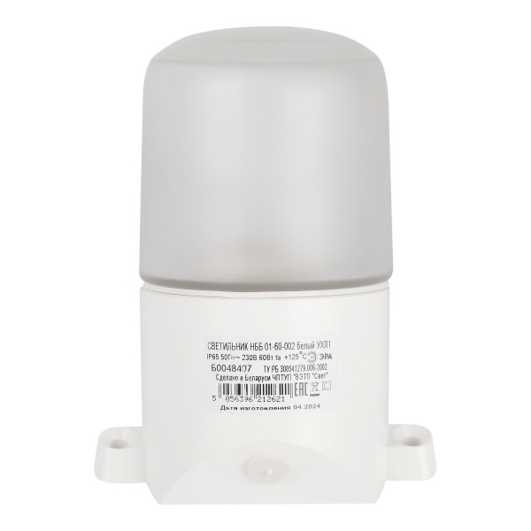 НББ 01-60-002 ЭРА Светильник для бани пласт/стекло, наклон IP65 E27 max 60Вт 158х116х85 БЕЛ (15/450)