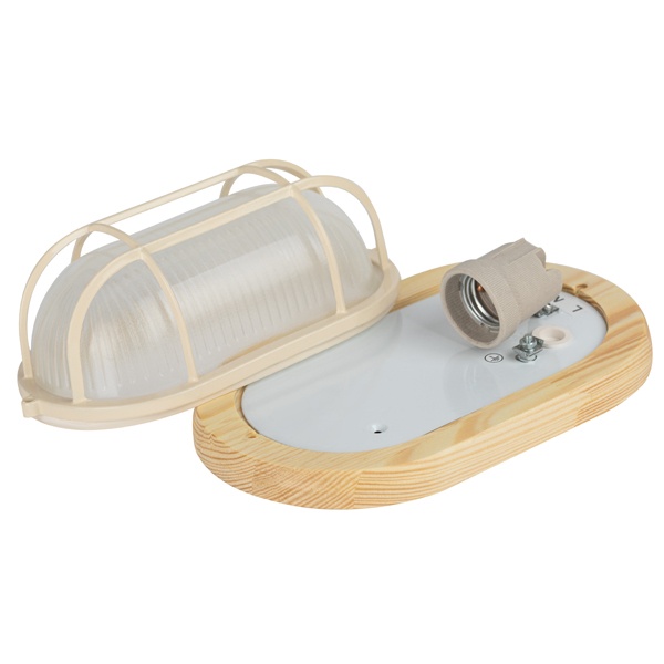 Светильник влагозащищенный ЭРА НБО 04-60-012, под лампу с цоколем E27 макс. мощностью 60 Ватт, цвет клен, с решеткой Б0048417