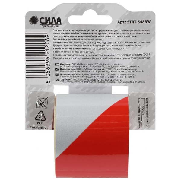 Лента светоотражающая STRT-548RW 5мх48мм красн./бел блистер СИЛА Б0048521