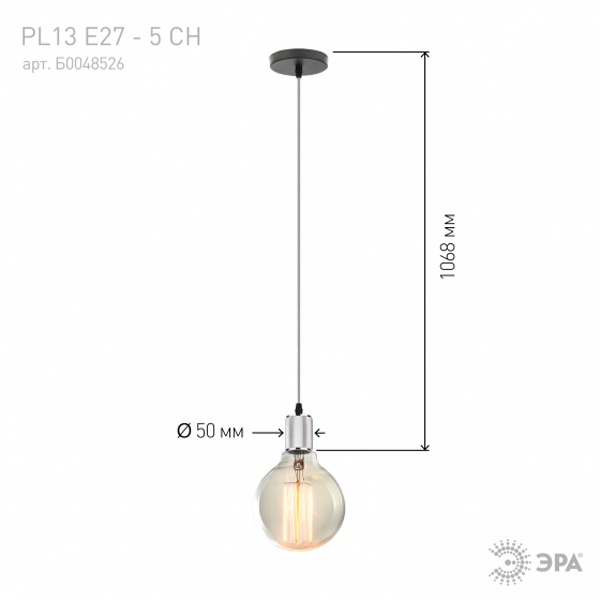 Светильник подвесной ЭРА PL13 E27 - 5 CH, цоколь Е27, провод 1 м, цвет хром Б0048526
