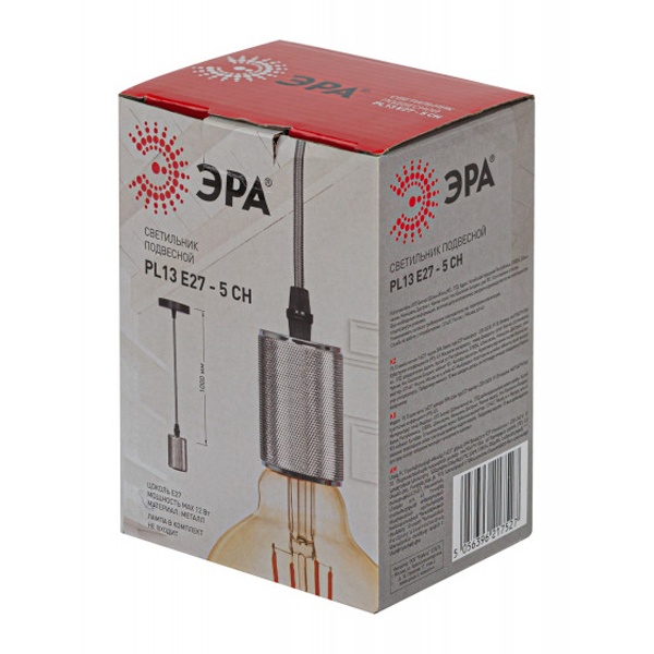 • Светильник подвесной ЭРА PL13 E27 - 5 CH, цоколь Е27, провод 1 м, цвет хром