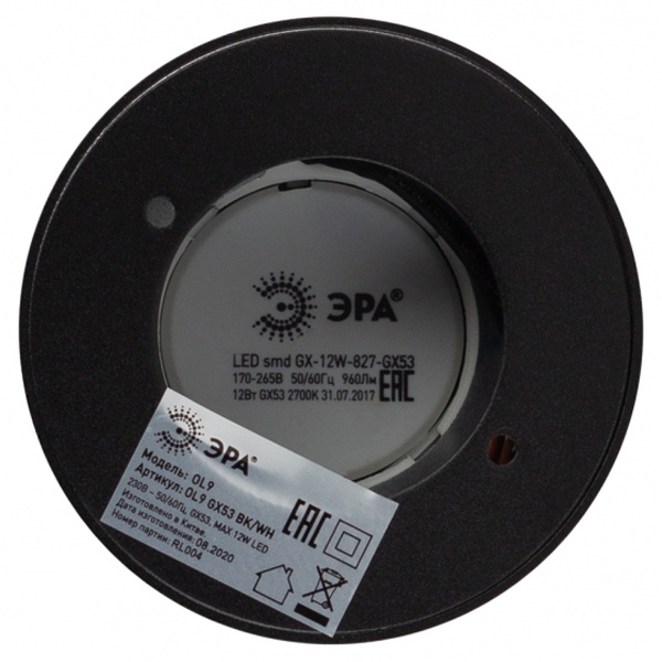 Светильник OL9 GX53 BK/WH GХ53 накладной подсветка алюм. черн./бел. ЭРА Б0048542