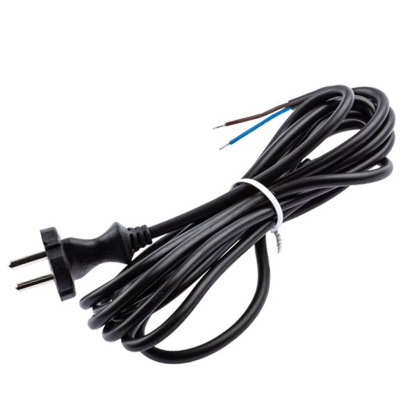 Шнур питания ПВС с вилкой, длиной 5 метров, сечением 2x0,75 мм2, черного цвета Б0048687