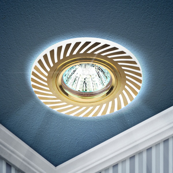 Светильник со светодиодной подсветкой под лампу MR16, встраиваемого исполнения, в двухцветном корпусе белый/золото. Б0048936