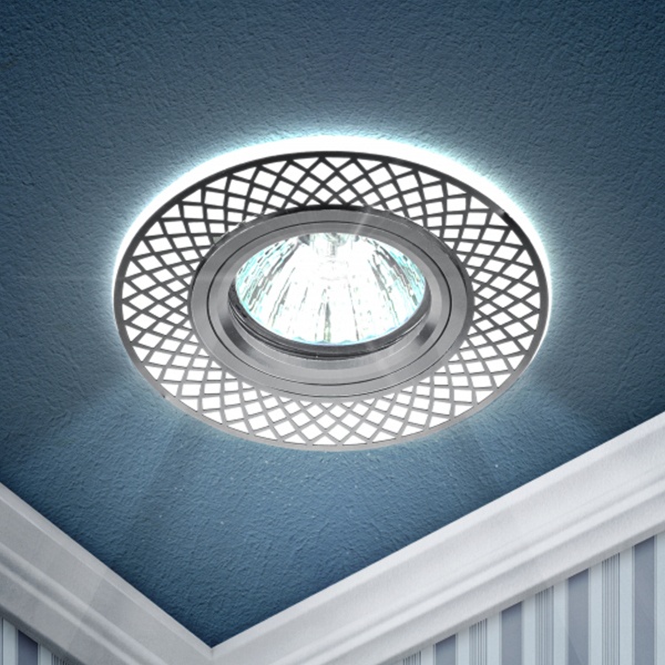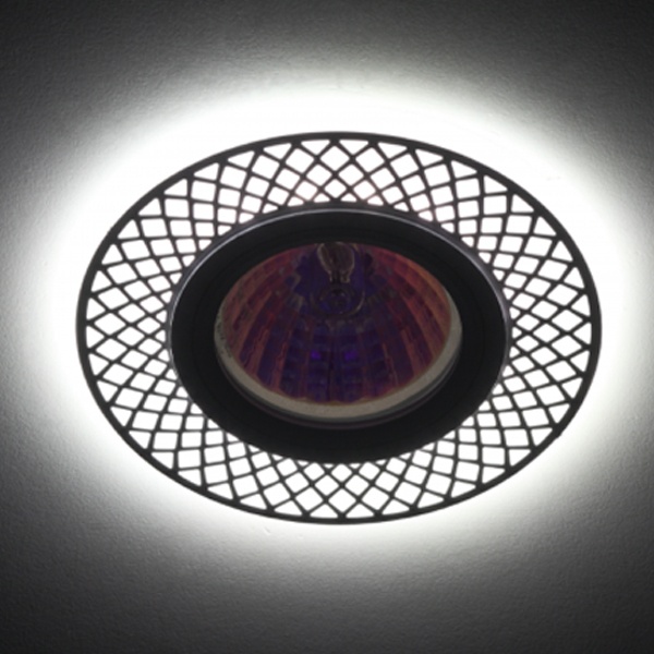 Светильник со светодиодной подсветкой под лампу MR16, встраиваемого исполнения, в двухцветном корпусе с узором белый/хром. Б0048938