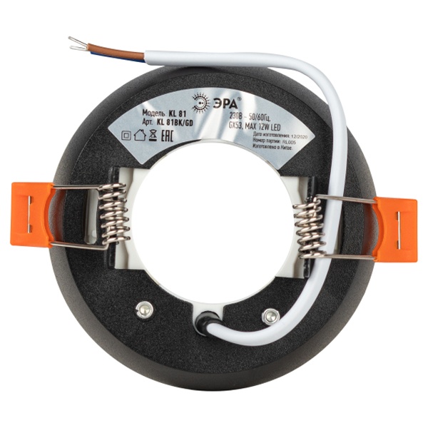 Встраиваемый алюминиевый точечный светильник Эра модель KL81 цвета черный/золото, с цоколем Gx53 230 Вольт. Б0049009