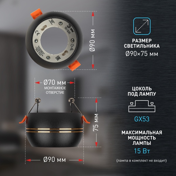 - Цоколь для источника света: GX53