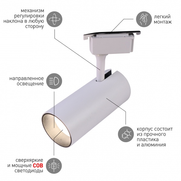 Однофазные трековые светильники от компании Эра. Модели поставляются в черном и белом цвете корпуса. Угол рассеивания света составляет 24 градуса, цветовая температура 4000К, что соответствует комфортному дневному свету. Светильники отлично подойдут для освещения торговых площадей или создания акцентов в жилых интерьерах, выполненных в современном стиле. Срок службы светодиодов составляет 50000 часов, за их стабильную и длительную работу отвечает современный импульсный драйвер, с защитой от скачков напряжения и высокочастотных помех. Все эти качества делают светильник отличным выбором для вашего проекта.
