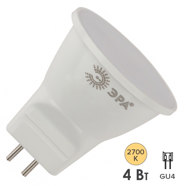 Светодиодная лампочка акцентного освещения ERA, мощностью 4 Ватта, с цоколем GU4, теплый свет Б0049065