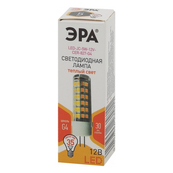 • Лампа светодиодная ЭРА LED JC-5W-12V-CER-827-G4 теплый свет 235811