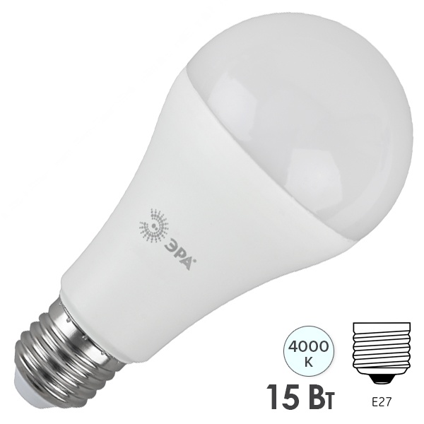 Низковольная, светодиодная лампочка местного освещения, формы груша ERA, мощностью 15 Ватт, с цоколем E27, нейтральный белый свет, матовая колба Б0049099
