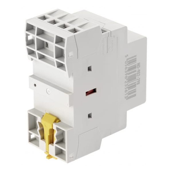 Коммутационный прибор серии КМ25-40 отечественной компании Эра предназначен для дистанционного управления различными электрическими устройствами. Модульный контактор состоит из системы контактов, дугогасительной и электромагнитной систем. Его управление осуществляется с помощью вспомогательной цепи электрического тока проходящего через катушку. Напряжение цепи управления - 230 Вольт AC/DC. При отсутствии напряжения в цепи управления контакты прибора всегда разомкнуты, что обеспечивает электробезопасность и удобство использования. Данное устройство имеет ширину в 3 модуля и оснащено 4 нормально открытыми контактами. Устройство рассчитано на нагрузку номинального тока 25 Ампер при рабочем напряжении цепи 400 Вольт и частоте 50 Герц. Максимально допустимое напряжение изоляции не должно превышать 500 Вольт. Реле широко используется в электроустановках жилых комплексов и производственных цехов и служит для автоматизации и управления различными технологическими процессами, в том числе в системах освещения, кондиционирования и вентиляции. Монтаж прибора осуществляется на DIN-рейку шириной 35 мм. Материалом изготовления корпуса является устойчивый к горению пластик – полиамид.