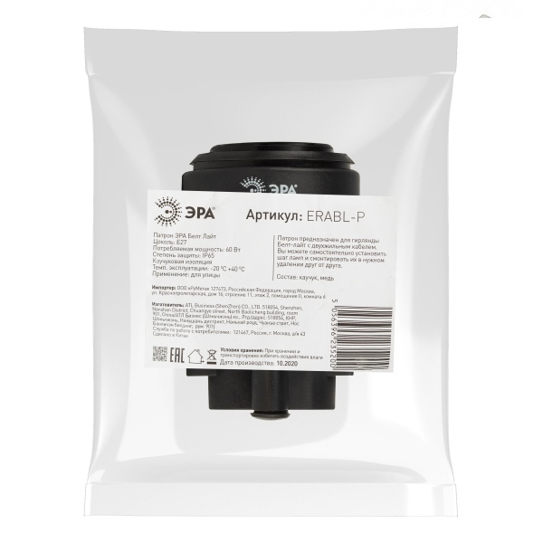 Влагостойкий черный патрон для гирлянд Белт-Лайт, цоколь Е27, ЭРА. Б0049176