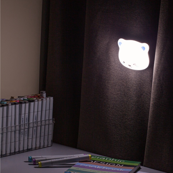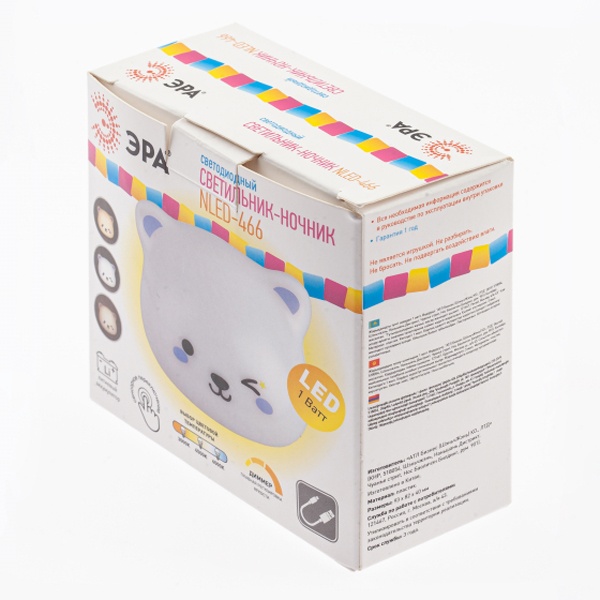 Удобный, красивый и функциональный аккумуляторный светильник-ночник ЭРА NLED-466 Мишка со светодиодами (LED). Дизайн корпуса ночника выполнен виде мордочки медвежонка. Работает от встроенного литиевого аккумулятора с подзарядкой от USB, кабель для подзарядки в комплекте. Отлично поможет добавить света там, где нет возможности повесить бра, будет полезен в любом месте для создания подсветки. С помощью встроенного магнитного крепления и входящего в комплект универсального магнитного стикера ночник крепится к любой поверхности и легко снимается для подзарядки. У ночника сенсорное управление - просто коснитесь “носика” для включения-выключения или выбора одного из трех цветов свечения. Удерживая касание, можно плавно регулировать яркость света.