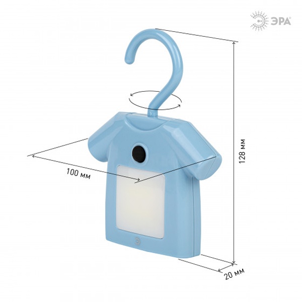 • Светильник-ночник ЭРА NLED-485-1W-SW-BU голубой есть крючок и магнитное крепление