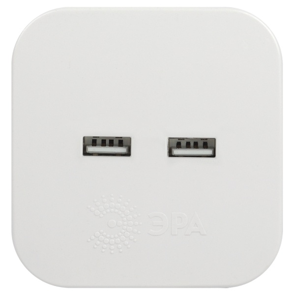 Разветвитель электрический SP-4-USB-W на 4 розетки 220В+ 2xUSB 2400мА без заземл 10А бел. Эра Б0049532