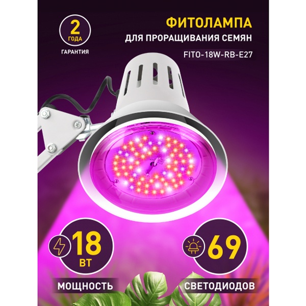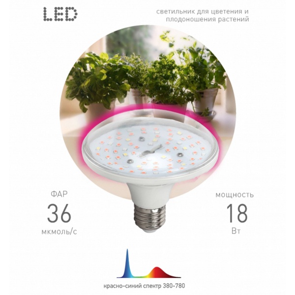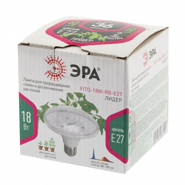Фитолампа красно-синего спектра FITO-18W-RB-E27 бренда ЭРА поможет Вам вырастить свежие овощи! Достаточно расположить светильник на расстоянии 5-25 см от верхушек растений. Прекрасно подойдет для всех корнеплодов, в том числе редиса. Также для капусты и зелени, рассады пасленовых. Благодаря энергии красно-синего спектра ростки смогут получить все необходимые вещества для быстрого роста. Кроме того, ускоряются фотобиологические процессы, увеличивается выработка сахаров. Корпус выполнен из алюминия. Обладает хорошим теплоотводом, минимизирует нагрев светодиодов. Прозрачный рассеиватель сохраняет световой поток по сравнению с матовым на 30-60%. Фитосветильник с такой лампой можно применять не только для рассады, но и для взрослых растений. Отсутствие пульсаций не раздражает глаза. Цветовая температура 2370 К подарит приятное свечение.Светильник для растений ЭРА правильный выбор для Ваших растений!