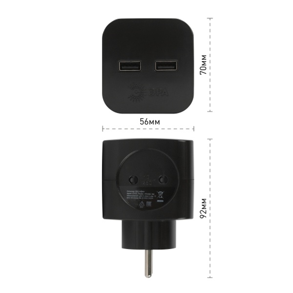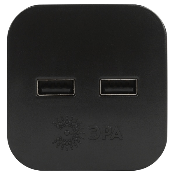 Разветвитель электрический SP-2-USB-B на 2 розетки 220В+ 2xUSB 2400мА без заземл 10А черн. Эра Б0049535