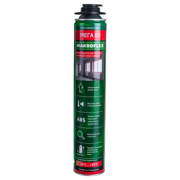 Высококачественная однокомпонентная, отверждаемая за счет реакции с влагой воздуха, полиуретановая пена с увеличенным выходом с превосходным соотношением открытых-закрытых ячеек и высокой механической прочностью. Наносится при помощи специального монтажного пистолета.