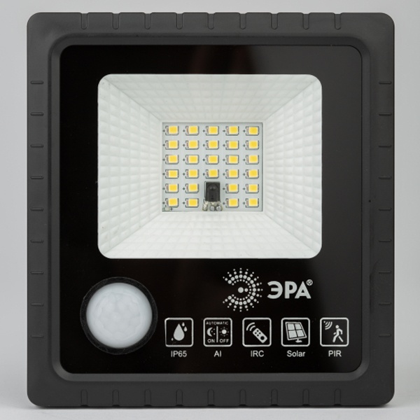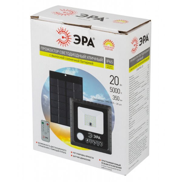 ЭРА Прожектор светодиодный уличный на солн. бат. 20W, 350 lm, 5000K, с датч. движения, ПДУ, IP65 (6/