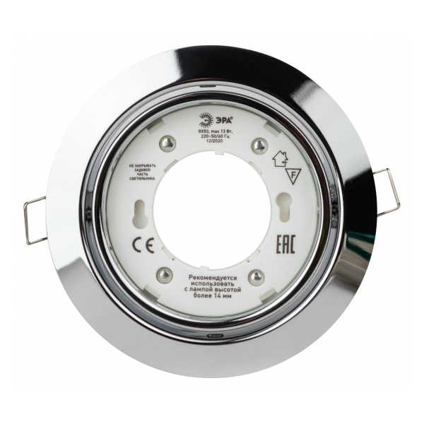 Светильник точечный встраиваемый ЭРА акцентного освещения под лампу с цоколем GX53 максимальной мощностью 15 Ватт, цвет хром Б0049556