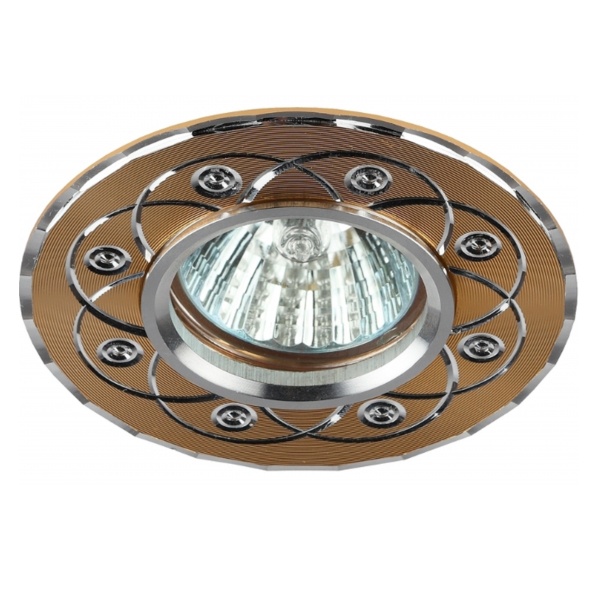Светильник ЭРА литой акцентного освещения под лампу с цоколем GU5,3 максимальной мощностью 50 Ватт, цвет золото/серебро Б0049567
