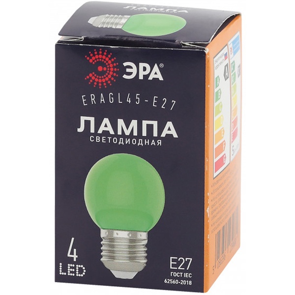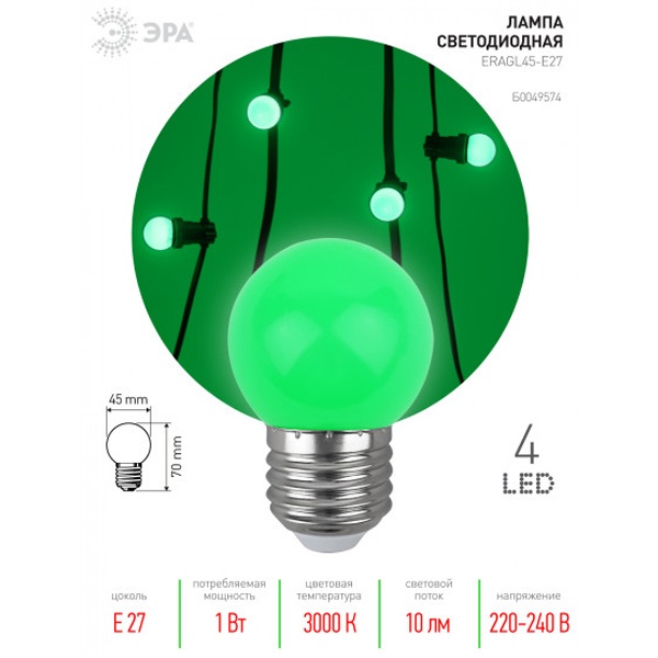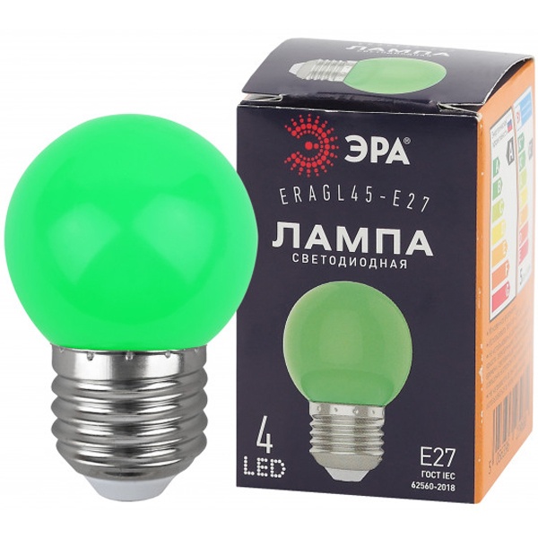 Лампа светодиодная ERAGL45-E27 P45 1Вт шар зел. E27 4SMD для белт-лайт ЭРА Б0049574