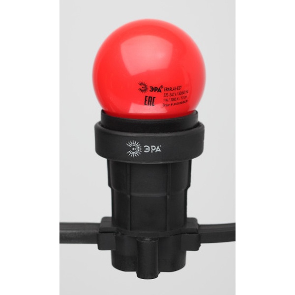 Светодиодная энергосберегающая лампочка декоративного освещения ЭРА для гирлянд Belt Light (белт-лайт), мощностью 1 Ватт, с цоколем E27, красное свечение Б0049575