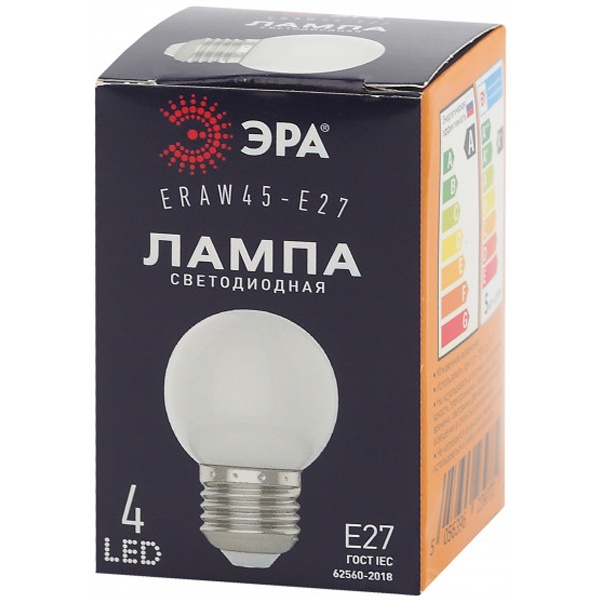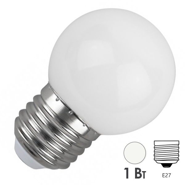 Лампа светодиодная ERAW45-E27 P45 1Вт шар бел. E27 4SMD для белт-лайт ЭРА Б0049577