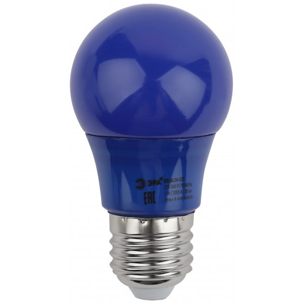 Лампа светодиодная ERABL50-E27 A50 3Вт груша син. E27 13SMD для белт-лайт ЭРА Б0049578