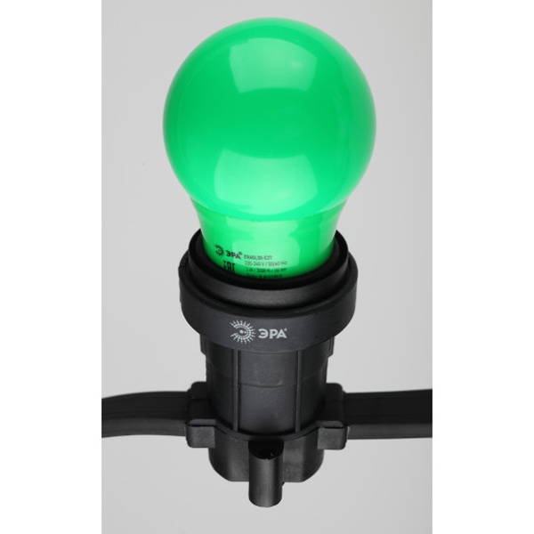 Светодиодная энергосберегающая лампочка (формы груша) декоративного освещения ЭРА для гирлянд Belt Light (белт-лайт), мощностью 3 Ватта, с цоколем E27, зеленое свечение Б0049579