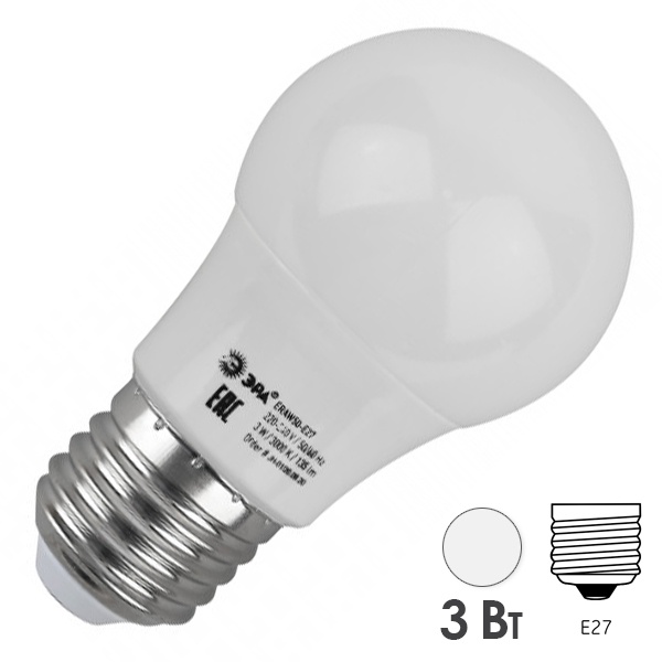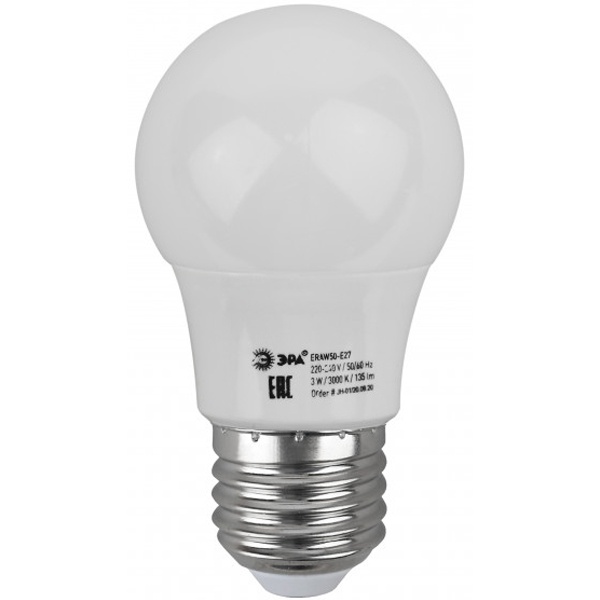 Лампа светодиодная ERAW50-E27 A50 3Вт груша бел. E27 13SMD для белт-лайт ЭРА Б0049582