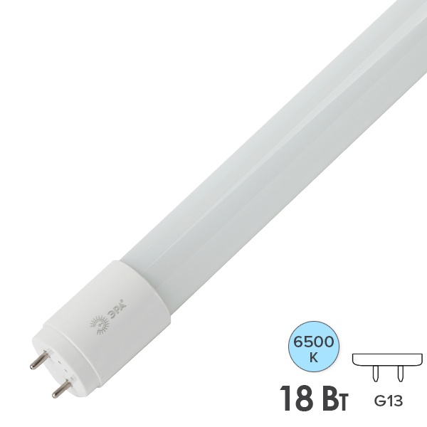 Светодиодная лампочка трубка ERA, мощностью 18 Ватт, с неповоротным цоколем G13, холодный дневной свет, двухстороннее подключение Б0049638