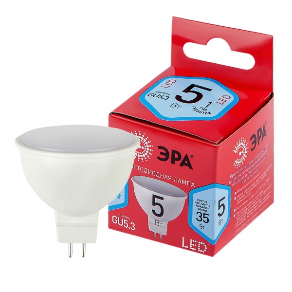 • Лампа светодиодная ЭРА LED RED LINE MR16-5W-840-GU5.3 4000K 220V холодный свет
