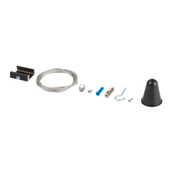 Комплект подвесного крепления с тросом длиной 3 метра, для трехфазного шинопровода, с черным декоративным колпачком Б0049747