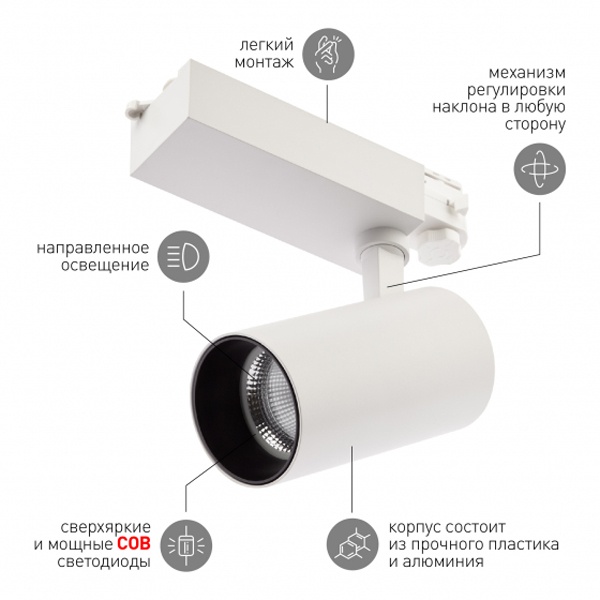 Современный минималистичный дизайн. Простота монтажа в трековые систем.