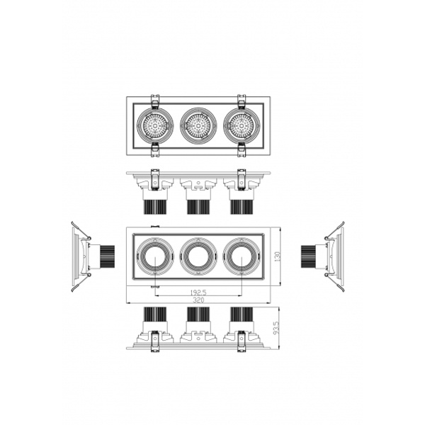 Светильник светодиодный встраиваемый направленного света с регулируемым углом, мощностью 3x9 Ватт, нейтральный белый свет Б0049759