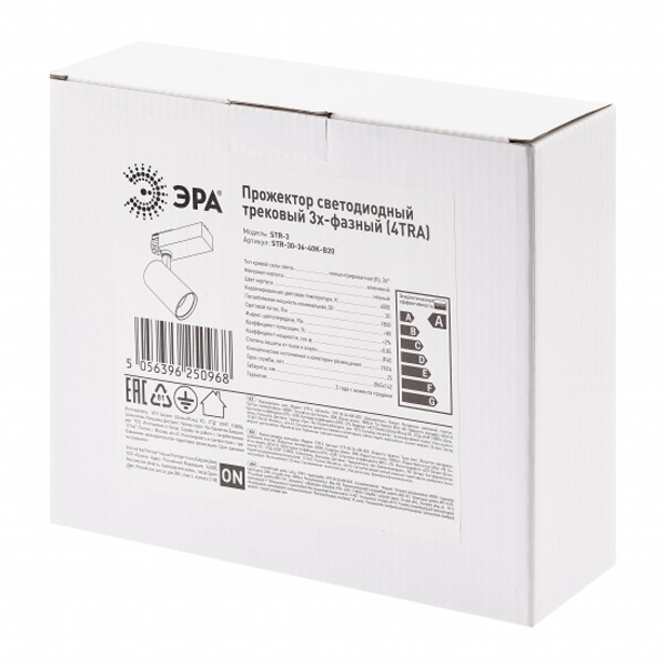 Светильник светодиодный трековый STR-30-36-40K-B20 20Вт 4000К 1800лм трехфазный узкий луч черн. Эра Б0049763