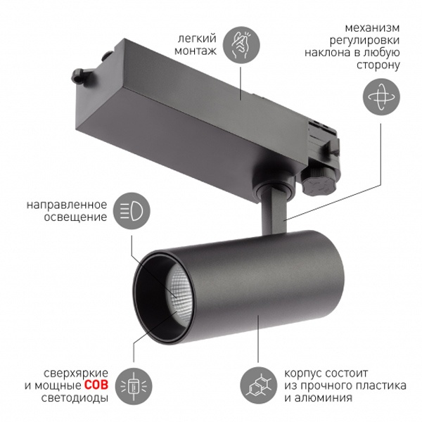 Предназначен для общего освещения торговых и общественных пространств, а также интерьеров в стиле hi-tech. Высокий уровень цветопередачи и низкие пульсации обеспечивают максимально комфортное освещение.В линейке представлены светильники с концентрированной КСС, а также регулируемым углом свечения.Трехфазная система освещения позволяет организовать светильники на одном шинопроводе в 3 независимые группы.Современный минималистичный дизайн. Простота монтажа в трековые систем.