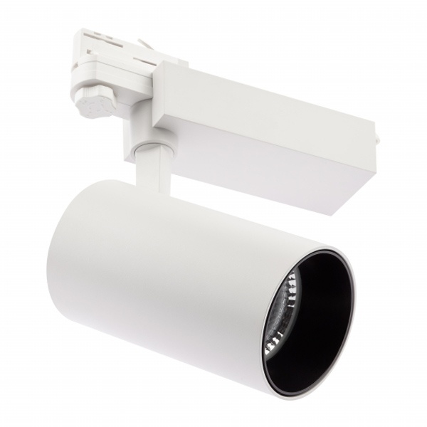 Белый поворотный светодиодный светильник ЭРА STR-30 для трехфазной трековой системы, мощностью 30 Ватт с теплым белым светом, углом рассеивания 36 градусов Б0049773