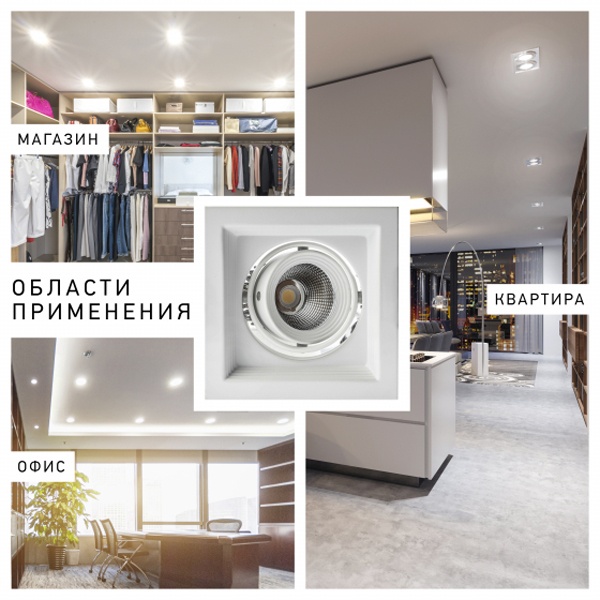 Светильник светодиодный встраиваемый направленного света с регулируемым углом "Карданный". Предназначен для акцентного освещения в торговых и общественных пространствах, а так же в интерьерах в стиле hi-tech. У светильника высокий уровень цветопередачи и низкие пульсации - что обеспечивает максимально комфортное освещение. Простой монтаж за счет пружинных лапок, а коннектор позволяет легко отключить светильник от драйвера.