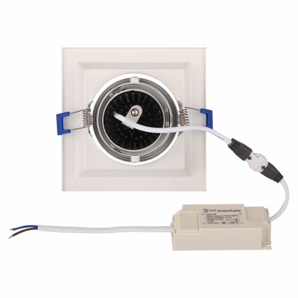 Белый светодиодный встраиваемый светильник с внешним драйвером и регулируемым углом, питанием от сети 230 Вольт мощностью 9 Ватт, холодного белого света. Б0049776
