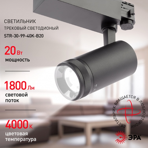 Серия трехфазных трековых светильников от компании Эра. Модель черного цвета и цветовой температуры 4000К( нейтральный белый), мощностью 20 ватт. Светильник оснащен регулируемой оптикой, которая позволяет настраивать угол рассеивания света в диапазоне 20-50. Светильник имеет классический, минималистичный дизайн, который позволяет его использовать как в проектах освещения комерческих площадей, так и в современных интерьерах. Инженеры компании Эра создавая модель STR-30 использовали электронные компоненты высокого качества, что гарантирует долгую и бесперебойную работу. Светильник STR-30, это симбиоз технологичности, надежности и разумной цены.